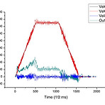 예전부터 찜찜하였던 속도 제어기를 다시 설계 하였다. 예전에 포스팅 했던 QEP 초기화 관련 설정으로 인하여 임펄스성 노이즈 문제도 사라져 있었다. 필터 등 몇몇 꼼수들을 제거하고 전형적인 PID 제어기를 구현 하였으며 약 한두시간 정도의 Try & Error (노가다) 를 통하여 게인값을 구한 후 위와 같은 속도 프로파일을 얻게 되었다. 썩 맘에 들지는 않으나 지금까지의 프로파일중 가장 그럴 듯 한 모양을 띄고 있다.